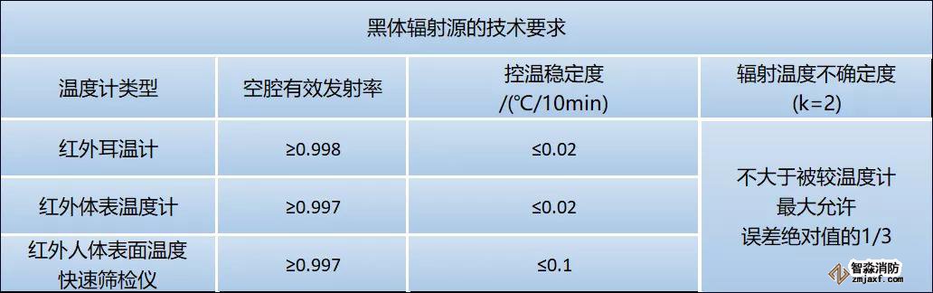 紅外額溫計和其他各種用于人體表面溫度快速篩檢的儀器則可以參照《測量人體溫度的紅外溫度計校準(zhǔn)規(guī)范》,其中對溫度源的技術(shù)要求為: