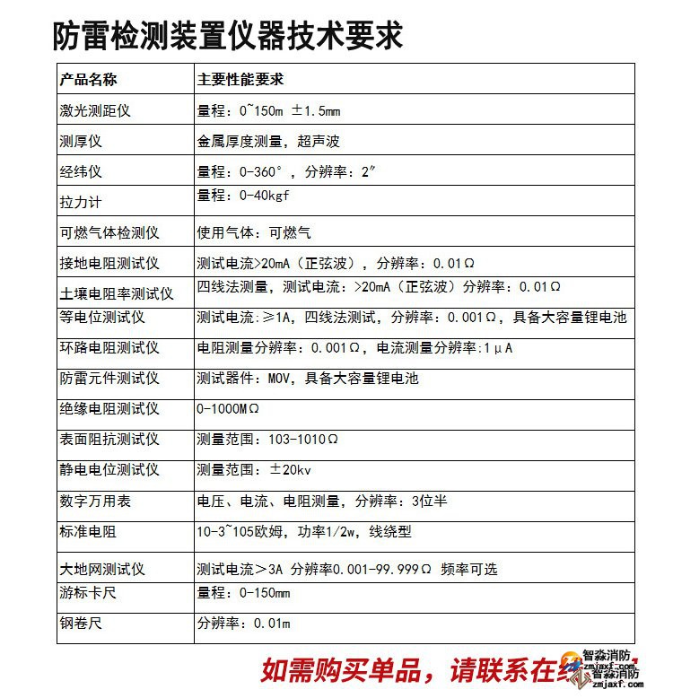 甲乙級(jí)防雷裝置 檢測(cè) 設(shè)備 序號(hào) 儀器設(shè)備名稱(chēng) 配置臺(tái)數(shù) 品牌 型號(hào) 主要性能要求 甲級(jí) 乙級(jí) 1. 激光測(cè)距儀 深達(dá)威 Q150 量程: 0-150m 2. 測(cè)厚儀 300C 金屬厚度測(cè)量,超聲波 3. 經(jīng)緯儀 量程:...