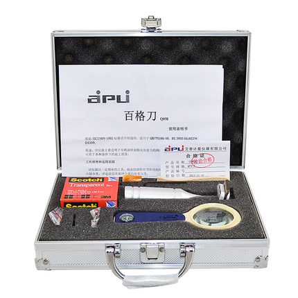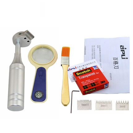 劃格器一把;3M(600型)膠帶一卷;狼毫刷一把;放大鏡一個;塑料攜帶箱一個