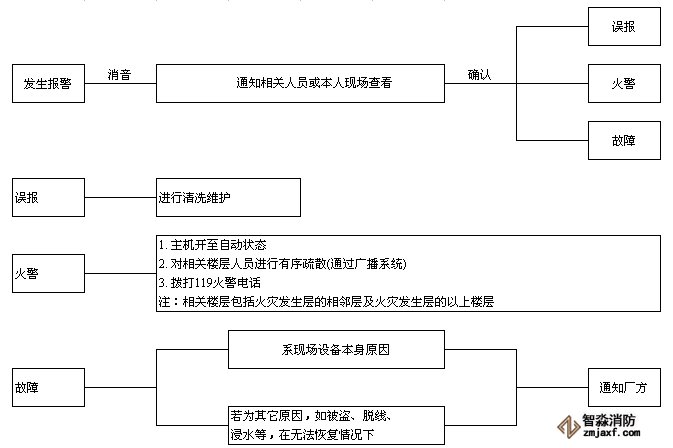 火災(zāi)自動(dòng)報(bào)警及聯(lián)動(dòng)系統(tǒng)操作流程圖