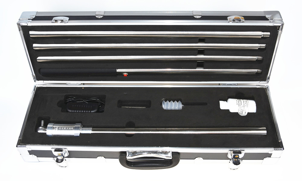 3、連接:根據(jù)高度適當(dāng)選取連接桿數(shù)量,然后將槍頭、連接桿、電池桿按順時(shí)針的方向轉(zhuǎn)連接。拆卸按相反的方向操作。