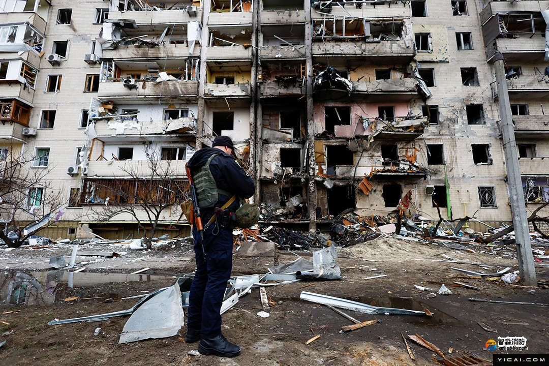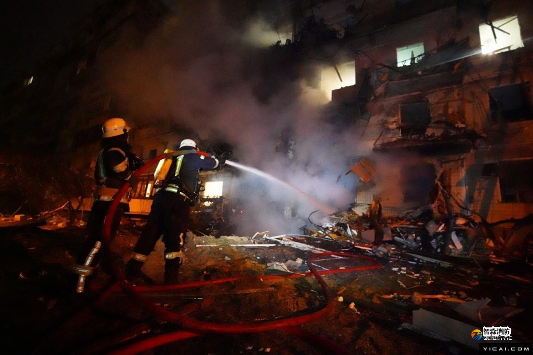 烏克蘭基輔一住宅樓遭炮擊引發(fā)大火 致8傷150人被疏散