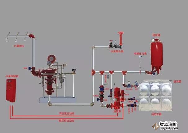 3、系統(tǒng)綜合性功能試驗(yàn):根據(jù)原設(shè)計(jì)的不同要求,對(duì)消防水泵分別進(jìn)行自動(dòng)、手動(dòng)、遠(yuǎn)程和泵房?jī)?nèi)就地啟動(dòng)的試驗(yàn);消防水泵組的主泵與副泵互為備用功能的相互切換試驗(yàn);根據(jù)有關(guān)要求進(jìn)行水壓試驗(yàn)和氣壓試驗(yàn);對(duì)報(bào)警控制裝置功能進(jìn)行檢驗(yàn)(如:濕式、干式系統(tǒng)的噴頭動(dòng)作后,是否由報(bào)警閥組的壓力開關(guān)直接連鎖控制并自動(dòng)啟動(dòng)供水泵。消防控制室(盤)能否控制水泵、電磁閥、電動(dòng)閥等的操作,并能顯示水流指示器、壓力開關(guān)、信號(hào)閥、水泵、消防水池及水箱水位、有壓氣體管道和電源等是否處于狀態(tài)的反饋信號(hào));報(bào)警閥功能試驗(yàn)(打開報(bào)警閥,查看測(cè)量報(bào)警動(dòng)作狀態(tài),輸出信號(hào)情況和消防水泵啟動(dòng)、聯(lián)動(dòng)、控制盤顯示情況是否符合檢驗(yàn)要求;打開放水試驗(yàn)閥,測(cè)量水的流量和壓力應(yīng)符合檢驗(yàn)要求);系統(tǒng)聯(lián)動(dòng)試驗(yàn)(模擬火災(zāi)信號(hào),火災(zāi)自動(dòng)報(bào)警系統(tǒng)應(yīng)發(fā)出聲光報(bào)警信號(hào)并啟動(dòng)自動(dòng)噴水滅火系統(tǒng);啟動(dòng)末端試水裝置處放水)。