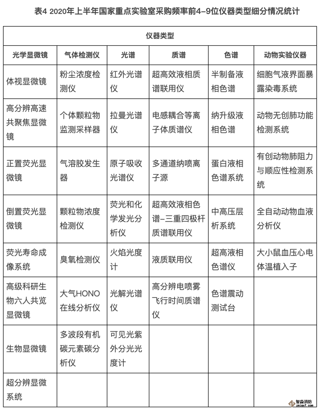 圖4:2020年上半年國家重點實驗室采購頻率最高的前14類儀器
