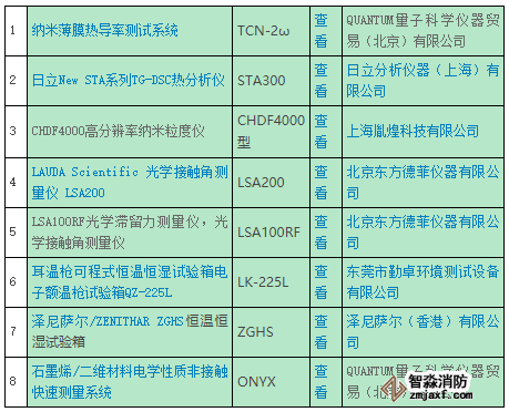 共有8臺(tái)新品物性測(cè)試儀器及設(shè)備成功入圍,其中納米薄膜熱導(dǎo)率測(cè)試系統(tǒng)1臺(tái)、熱分析儀1臺(tái)、納米粒度儀1臺(tái)、接觸角測(cè)量?jī)x2臺(tái)、試驗(yàn)箱臺(tái)、電學(xué)性質(zhì)非接觸快速測(cè)量系統(tǒng)1臺(tái)。