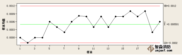 判定準則:不能有點超出上、下控制限;不能有連續(xù)9點(或更多)落在控制中心線的同一側(cè);不能有連續(xù)6點(或更多)持續(xù)上升或下降;不能有連續(xù)14點交互升降。