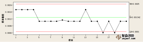 偏倚滿足上述評判準則,所以測量系統(tǒng)的偏倚特性是滿足要求的。