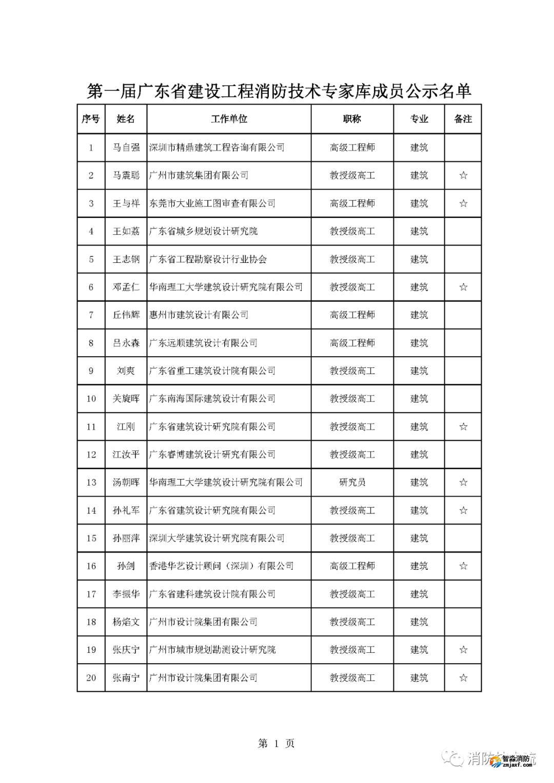 廣東省第一屆建設(shè)工程消防技術(shù)專(zhuān)家?guī)烀麊蔚墓荆河?guó)注冊(cè)消防工程師上榜!