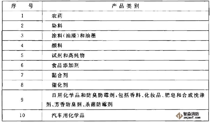 表1是在上海市工程建設(shè)規(guī)范《精細(xì)化工企業(yè)設(shè)計(jì)防火規(guī)范》DGJ 08的基礎(chǔ)上,參照日本1990年精細(xì)化工產(chǎn)品分類,并結(jié)合我國(guó)精細(xì)化工產(chǎn)品品種的發(fā)展制定的。
